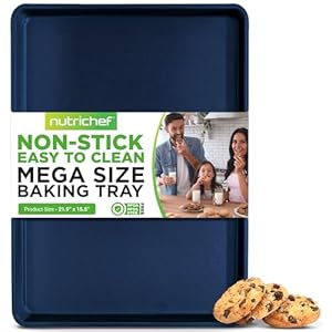 Bakeware, Pie & Tart PansNutriChef Non-Stick XL Cookie Sheet for Baking – Premium Extra Large Carbon Steel Baking Tray for Cookies, Jelly Rolls, Pastries, & More – Blue Diamond, 22″ x 16″