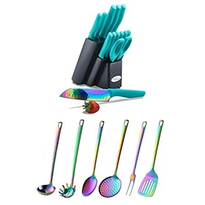 A Value Set for all Cutting Needs and Cooking Needs– Marco Almond are well suited for daily use at home in restaurant or kitchen. They are suitable for almost everything like cutting meat,fish, chopping fruits, vegetables, herbs, hardest bread crusts, hard cheese etc. 14 Pieces kitchen knives set.Covering all kinds of cooking needs, include: 1 pasta server, 1 skimmer spoon, 1 Serving Spoon,1 serving fork,1 soup ladle, 1 slotted turner.