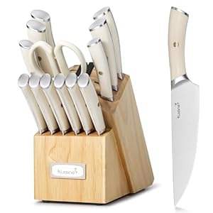 Cutlery, Knife SetsKitchen Chef’s Knife Set Block Utensils Set, German High Carbon Stainless Steel Razor-Sharp Blade Ergonomic Handle, Kitchen Knife Block Set with Built-in Sharpener, Elegant Gift(Ivory,15pcs)