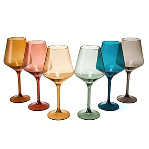 Keep your drink cold and classy with this Plastic Muted Colored Wine Glasses Set by The Wine Savant. Designed for indoor and outdoor use, these colored plastic wine glasses are perfect for serving your favorite alcoholic beverage in style. Reusable and shatterproof, these plastic glasses won’t break when dropped. Each glass holds 15 ounces of wine or other beverages for festive occasions at home, weddings, outdoor celebrations or anywhere you need a sturdy yet elegant drinking glass