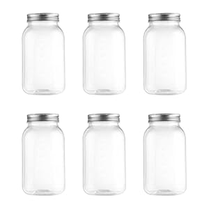 Food Storage, Mason Jars & Accessoriesnovelinks 32 OZ Clear Plastic Mason Jars with Lids – Dishwasher Safe Plastic Mason Jars 32 OZ Plastic Jars with Lids for Kitchen & Household Storage (6 Pack) (Silver)