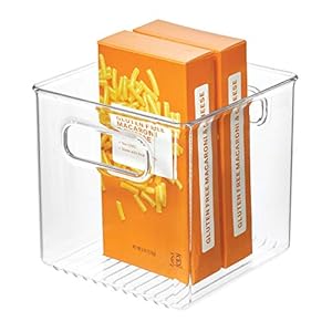 Food Storage, Pantry OrganizationiDesign Recycled Plastic Pantry and Kitchen Storage, Freezer and Fridge Organizer Bin with Easy Grip Handles – 6” x 6” x 6”, Clear