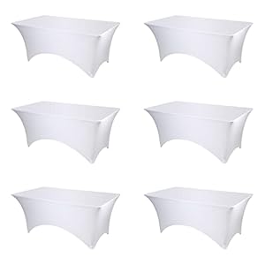Kitchen Linens, Tablecloths & Placemats6 Pack White Fitted Spandex Table Covers – 6Ft Stretch Tablecloths for 6 Foot Rectangle Folding Tables Rectangular Bulk Linen Fabric Elastic for Wedding Banquet Party Buffet Display