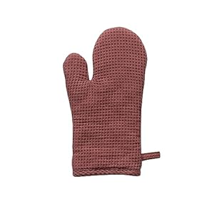 Protect every hands and surfaces from the heat with this woven linen and cotton waffle hot mitt in berry color that matches any kitchen decor, and a textured waffle pattern that adds visual interest and a unique tactile experience