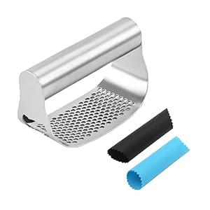 Easy to Use and Clean: Simply roll it over the garlic,rather than just pressing. The garlic is conveniently collected on the back-surface of the press, making it easy to scoop out with a spoon. Cleaning is a breeze – rinse it under running water or run it through the dishwasher.