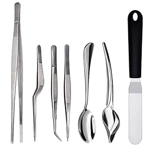 Contents : 11.5-Inch Offset Spatula,Decorating Spoons 7.76-Inch,plating spoon with solid bowl 8-Inch,Long straight tweezers12-Inch.