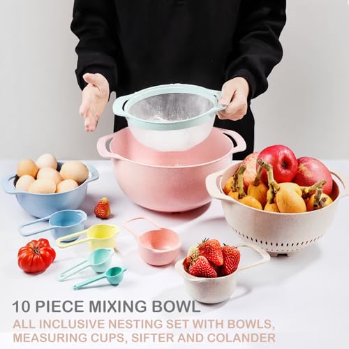 Premium Material —Our 10 Pcs Plastic Mixing Bowls Set are constructed with organic wheat straw fiber and food-grade PP, 100% BPA free, non-toxic, odorless, and environmentally friendly. These mixing bowls are dishwasher safe for fast and easy clean up and the colorful mixing bowl set is more convenient for you and your family.