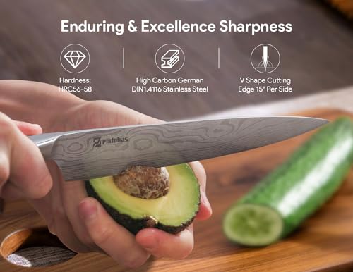 Quality Manufacturing, Rust And Corrosion Resistant: Piklohas cutting knife is German top grade X50CrMoV15 high carbon steel with precision quenching and vacuum cold nitrogen treatment. It dramatically enhances the characteristics of corrosion resistance, rust prevention, and toughness, which can withstand high-frequency use.