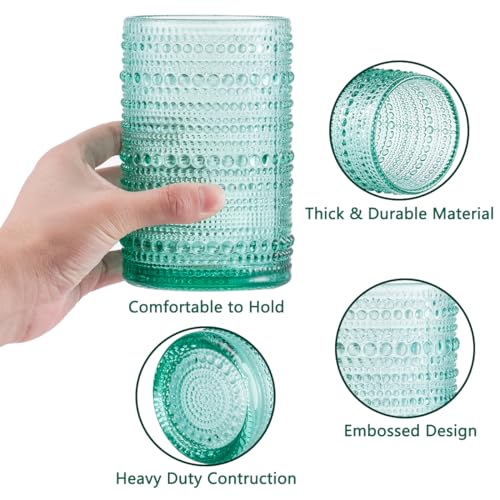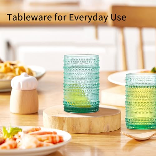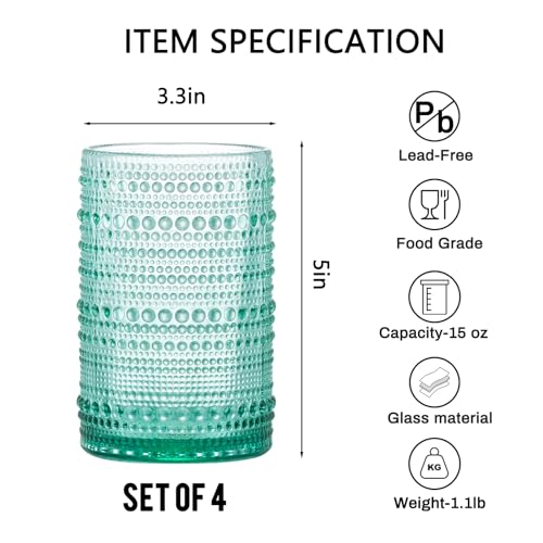 15oz Highball Drinking Glass Set of 4 – Hobnail Drinking Glasses Drinkware, Heavy & Reusable Aesthetic Glassware, Tall Kitchen Glasses Set for Soda, Vodka, Cocktail, Martini, Whiskey