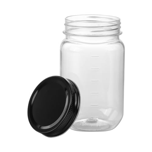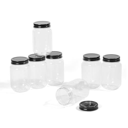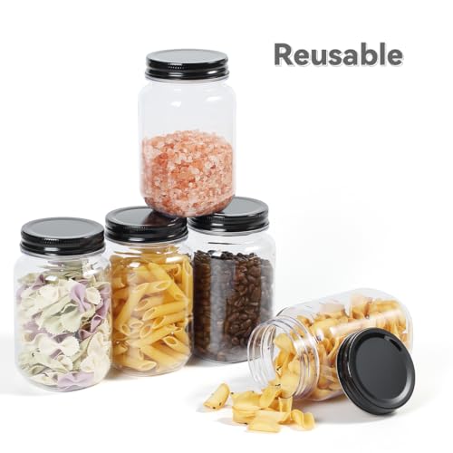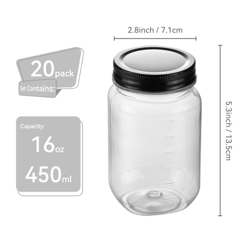 16 Ounce Clear Mason Jars Plastic Storage Containers with Lids Plastic Jars,BPA Free (20 Pack-Black)