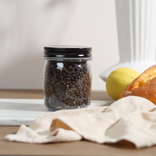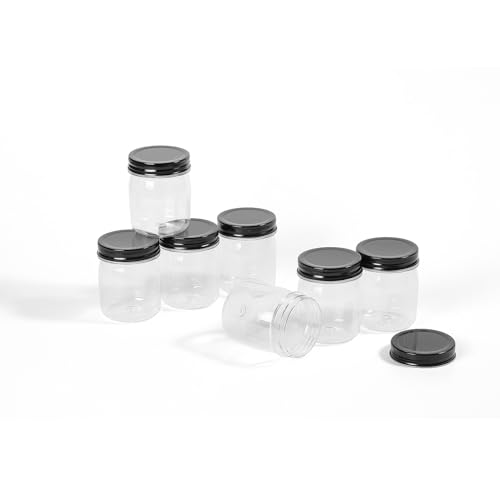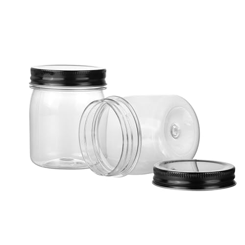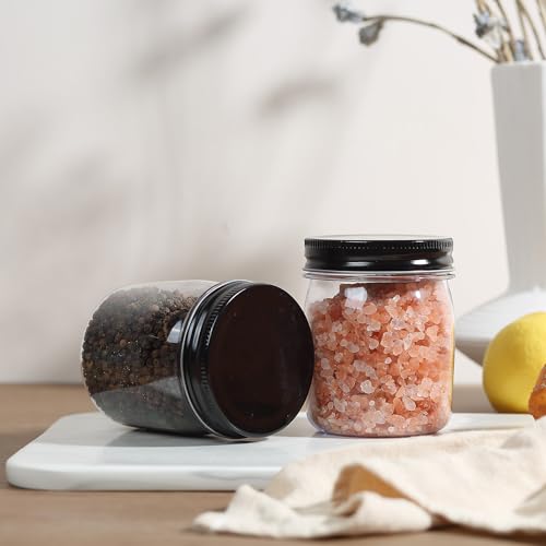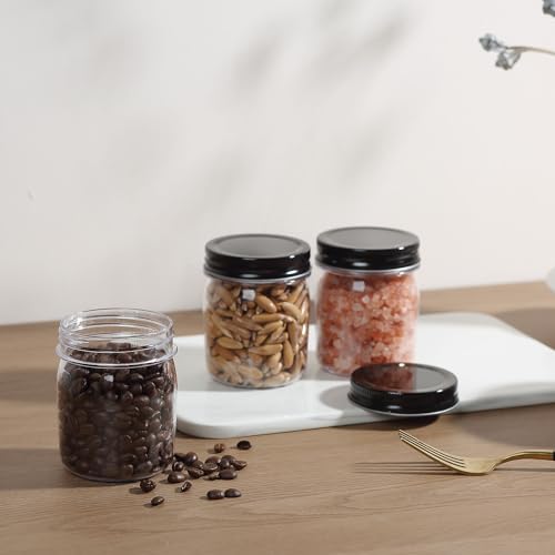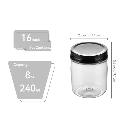 16 Pack 8OZ Black Plastic Jars With Screw On Lids,Plastic Mason Jars Food Storage Container For Storing Dry Food, Candy, Cream,Peanut, Butter