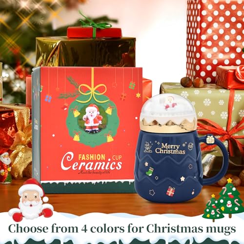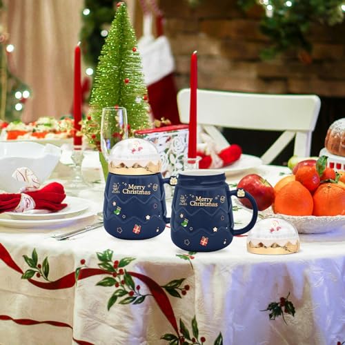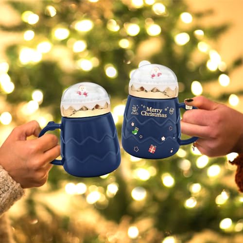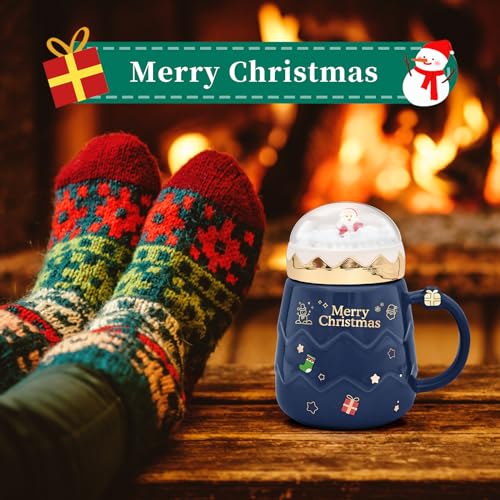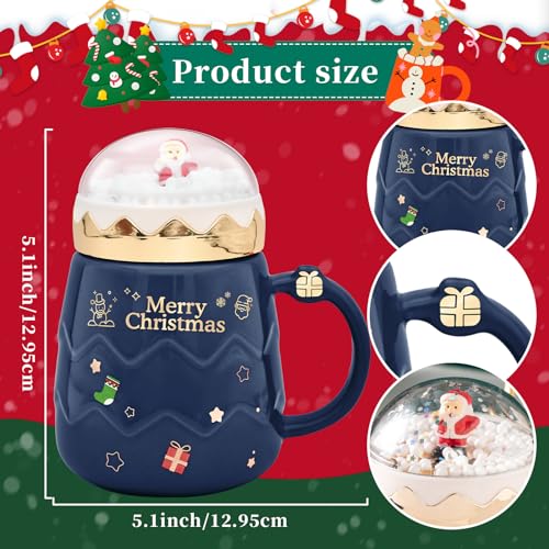 17.6 oz Christmas Mug with Winter Snow Globes Lid Decorations, Large Cute Festive Ceramic Coffee Cup, Winter Xmas Birthday Tabletop Drinkware Teacup Gifts for Adults Kids Men Women (Dark Blue)