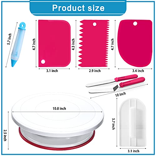SMOOTH REVOLVING TURNTABLE: This cake turntable stand revolve smoothly with hidden ball bearings and helps you super easy to decorate cakes for birthdays, weddings and other events.It revolves clock & anti clock wise, good for both Right & Left handers. Our cake turntable with silicone belt, is made from non-sticky & dishwasher safe plastic, providing a solid bench top to you.You can use our straight spatula for icing round cakes from sides and angled spatula from Top while rotating turntable.