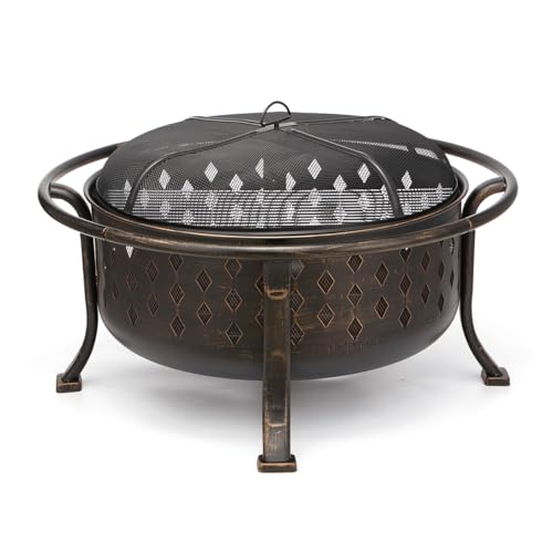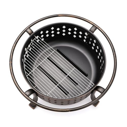 36 Inch Fire Pits for Outside Outdoor Wood Burning Firepit with BBQ Grate Large Heavy Duty Steel Firepit Bowl Bonfire Pit for Patio Backyard Garden Camping