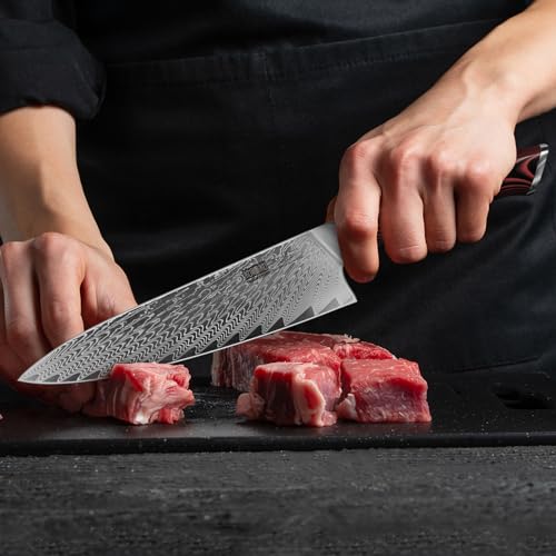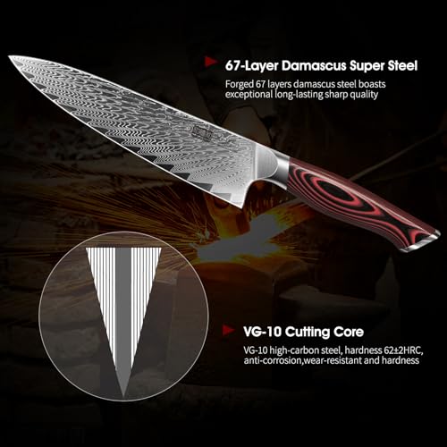 8 Inch Damascus Chef Knife, Professional VG-10 Damascus Super Steel Kitchen Knife, Ultra Sharp Cooking Knife with Ergonomic G10 Handle