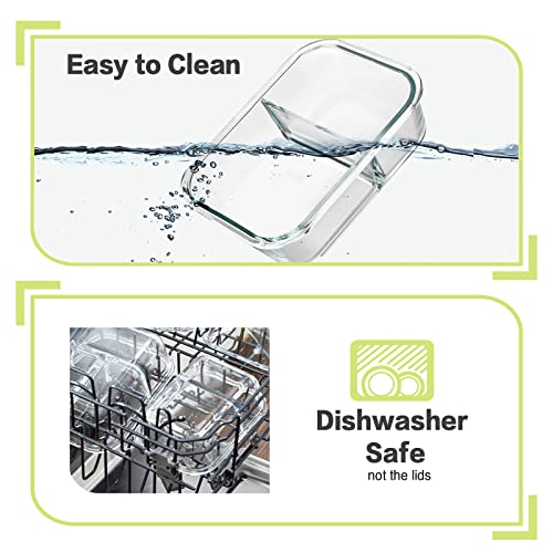[BPA Free & Easy to Clean] BPA-Free plastic locking lid is safe as well as leakproof. Crystal clear borosilicate glass is easy to clean without absorbing stains or smells. They are dishwasher safe to free your hands. Also the silicone seal is removable for your to clean and dry it. In order to prevent seal sticking to the containers, please must wash the lids and containers before put them away