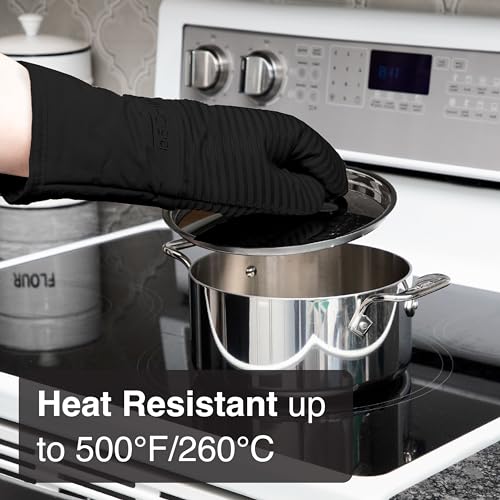 HEAVYWEIGHT: Durable oven mitt set 100% cotton-twill construction with textured, dual-sided silicone treatment for a confident, left- and right-handed non-slip grip