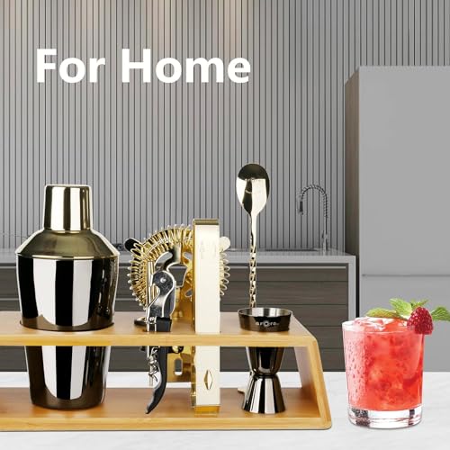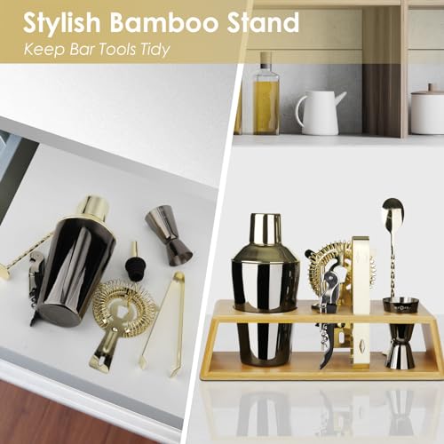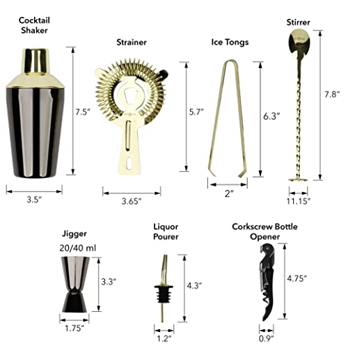 Drink without Worries: Our cocktail shaker kit is made from food-grade 18/8 stainless steel, BPA-free, no lead and cadmium. Unlike most bar kits, our bartending accessories features electroplated gold and black finishes for a stylish and unique look. Easily hand washed with warm soapy water, they won’t rust and will stay bright and shiny after years of shaking, this drink mixer set is the ideal choice for mixing chilled cocktails.