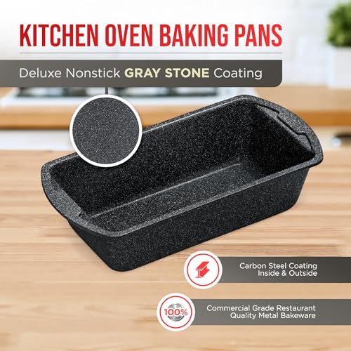 DELUXE NONSTICK COATING – featuring a deluxe gray stone coating inside and out, our bakeware guarantees a non-stick experience across all pieces of our baking ware set, ensuring your creations release effortlessly and cleanup is a breeze