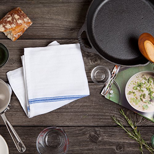 Commercial Dish Towels White Herringbone Towels (Dozen) Commercial Kitchen Towels Dish towels are made in Bangladesh to commercial standards. 24 ounces / dozen commercial weight for durability. Herringbone weave makes this classic towels absorbent and durable. Fast drying towels produce minimal lint and are great for drying dishes and glasses, as well as for general kitchen duty. These towels are bleach safe for high-performing kitchens and come with sewn hems on all four sides. Economy Pack with 12 towels: Perfect for cooking and entertaining. Perfect Size for All Types of Kitchen Duties (14″x25″) Dry silverware, dishes and stemware fast and easily. Dry fruit and produce. Cover bread dough, freshly baked bread, and cold meat cuts. Can be used as napkins, placemats or outdoors for barbecues. Multiple Other Uses Around the House Great towel for home bars. Ideal gym/workout towel. Keep a few in your gym bag. Great for shaving, drying razors and cleaning the counter/sink. Clean windows, mirrors and computer screens. Washing and Care Instructions Wash towels before first use. Towels will lose any lint remaining from the weaving process, and will become softer and more absorbent after washing. Wash: Use warm water; use bleach for the whitest towels. Do not use fabric softener (coats the cotton fibers causing towel to become less absorbent) Dry towels in low heat/delicate cycle to minimize shrinkage. May be ironed with medium heat. 100% Money-Back If you do not love these towels as much as we do, simply return them for a full 100% refund