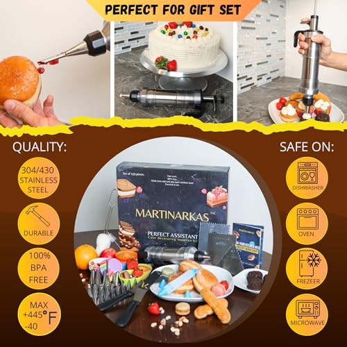 BPA-FREE PLASTIC AND SILICONE, STAINLESS STEEL 304/430: Your cake decorating supplies kit is a treasure trove for any baking enthusiast. Fill, frost, and decorate with confidence. Each piece of your cake decorating kit meets stringent food safety standards and is crafted from high-grade materials.
