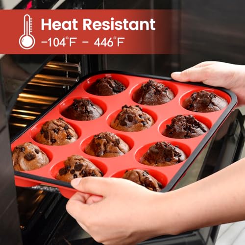 CAKETIME Muffin Pan, Silicone Cupcake Pan Metal Reinforced Frame 12 Cups Regular Silicone Muffin Tray Nonstick BPA Free 2 Pack