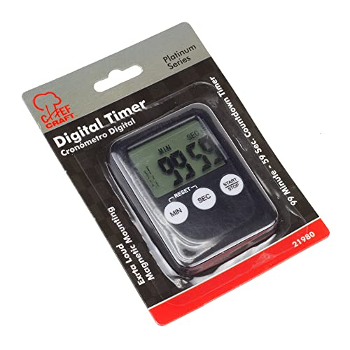 Chef Craft’s Black Large Number Digital Timer is small and easy to store whether it be in your kitchen drawer or a box for a game. However, its small size is offset by its large number display, keeping it easy to read and easy to set. The magnet on the back makes it easy to store and keeps it in a convenient location where it won’t get lost. The black color works in any kitchen and household. The extra loud alarm guarantees you won’t forget what you are cooking!