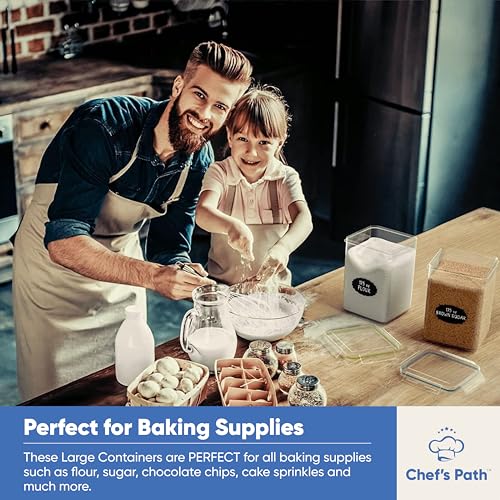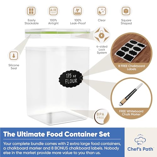 Chef’s Path Extra Large Food Storage Containers with Lids Airtight (5.2L|175Oz|2 Pack) for Flour, Sugar, Rice & Baking Supply – Airtight Kitchen & Pantry Bulk Food Storage for Kitchen Organization