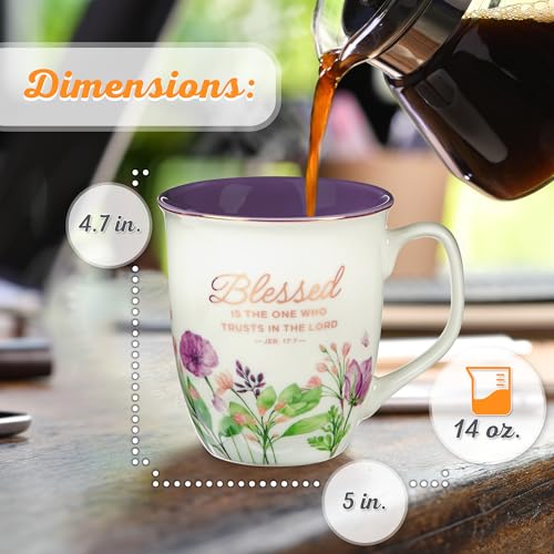 Christian Art Gifts Large Ceramic Inspirational Scripture Coffee & Tea Mug for Women: Blessed Encouraging Rose Gold Bible Verse, Novelty Drinkware for Home & Kitchen, Multicolor Purple Floral, 14 oz.