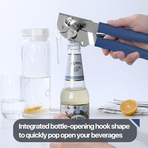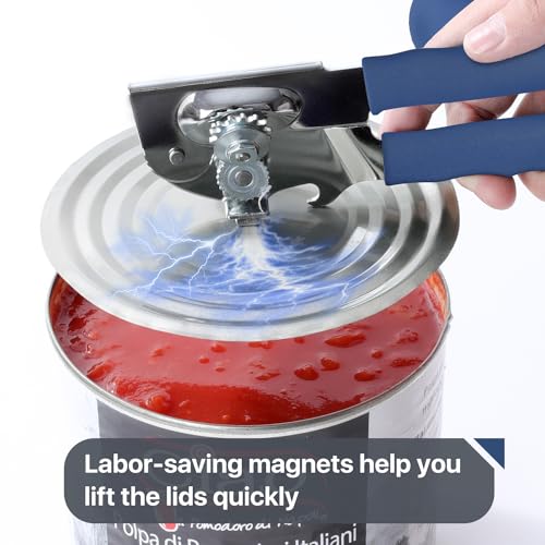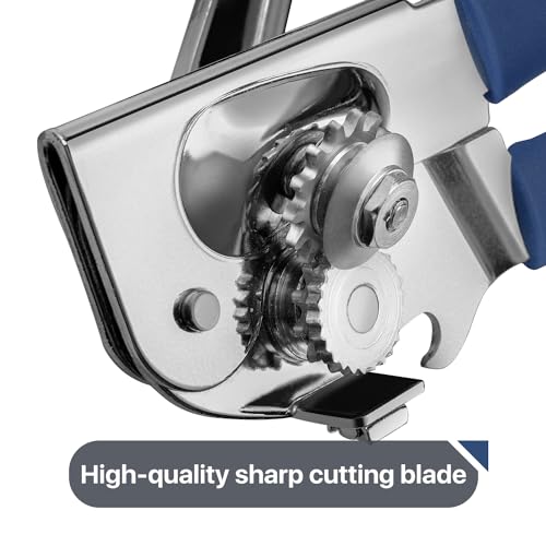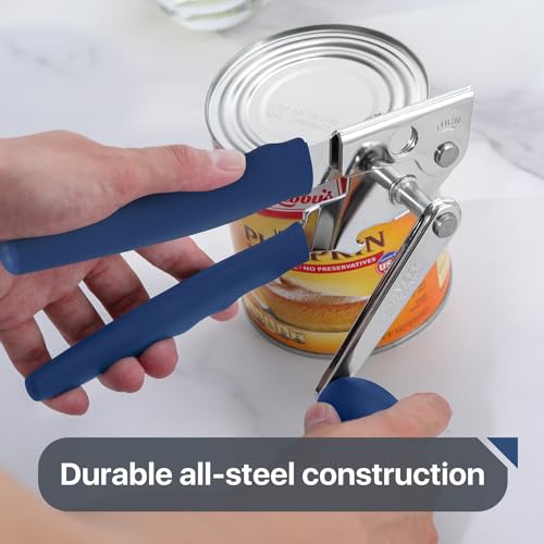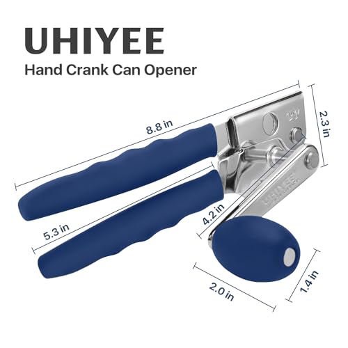 Commercial Can Opener, UHIYEE Hand Crank Can Opener Manual Heavy Duty with Comfortable Extra-long Handles, Oversized Knob, Large Handheld Can Opener Easy for Big Cans, Blue