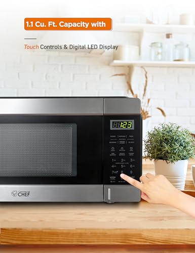 Commercial Chef CHCM11100SSB Countertop Microwave, 1.1 Cubic Feet, Black with Stainless Steel Trim