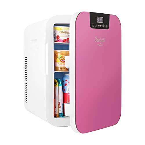 Cooluli 20L Mini Fridge For Bedroom – Car, Office Desk & College Dorm Room – Glass Front & Digital Temperature Control – Small 12v Refrigerator for Food, Drinks, Skincare, Beauty & Breast Milk (Pink)