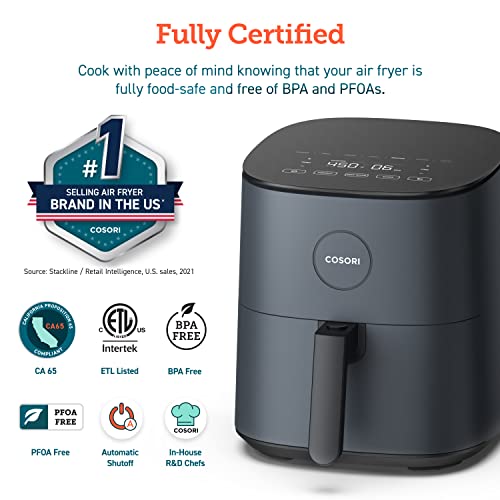 COSORI Air Fryer, 5 Qt, 9 One-Touch Cooking Functions, Dishwasher-Safe, 30 Recipes, 450℉ Airfryer Compact Oilless Small Oven, Tempered Glass Display, Nonstick Basket, Quiet, Fit for 2-4 People