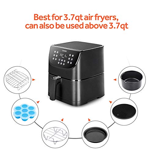 COSORI Air Fryer Accessories, Set of 6 Fit for Most 3.7Qt and Larger Oven Cake & Pizza Pan, Metal Holder, Skewer Rack & Skewers, etc, BPA Free, Nonstick Coating, Dishwasher Safe