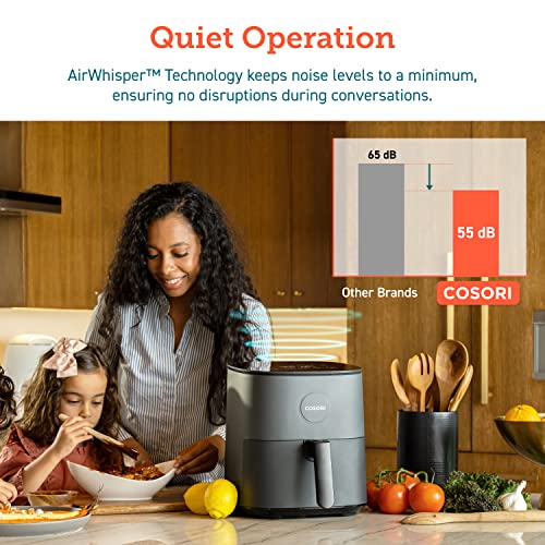 COSORI Pro LE Air Fryer cooks with industry-leading temperatures up to 450°F, silent technology keeps you from disturbing. 5QT is perfect for 2-4 persons and it won’t take up too much kitchen space.
