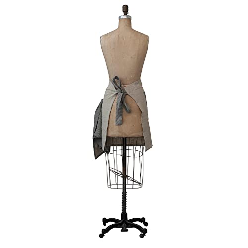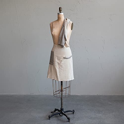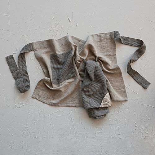 This casual half apron and tea towel set features durable linen construction in a pin stripe design