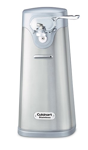 With one touch, the Cuisinart Deluxe Stainless Steel Can Opener makes short work of any standard size can. The precision Power Cut blade effortlessly slices through cans, held in place by the handy magnetic lid holder. Cuisinart designed the arm to be removable, making cleanup effortless. The freestanding can opener has an extra-wide base to prevent tipping, while the clean lines of the brushed stainless steel complement any other premium countertop appliances for luxury chef’s kitchen. Features: Stainless steel construction|Power Cut blade|One-touch operation|Opens any standard size can|Removable activation lever for easy cleanup|BPA Free|Limited 3-year Warranty