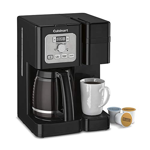 Get the best of both worlds with the dual brew options of Cuisinart’s Coffee Center Brew Basics. The fully programmable coffeemaker lets you choose the amount you brew with -a full-service option that makes 12 fresh cups in a glass carafe and a single-serve side that brews 8-, 10-, and 12-oz sized cups in minutes (compatible with any single-cup pod, including Keurig’s K-Cup). Whether you are hosting at home and need to serve multiple cups of coffee quickly or just want to brew a cup for yourself with minimal mess, our Coffee Center Brew Basics is here to deliver. Maximize the counter space in your kitchen with Cuisinart’s answer to all your coffee needs; this two in one solution is your go-to for the freshest, most delicious coffee!