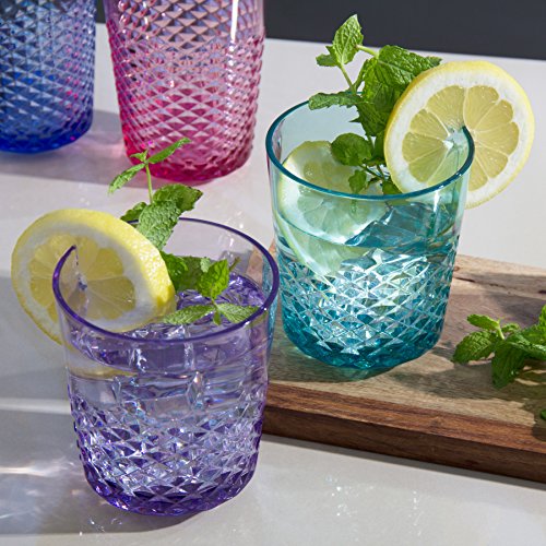 Designed for everyday elegance, the diamond collection looks like crystal but has the durability of premium acrylic materials. Ideal for indoor and outdoor use, these tumblers will instantly liven up any table. This collection of 8 features 4 pairs of luminous colors in 24 oz and 14 oz tumblers. The assorted sizes make this set perfect for enjoying tall glasses of water and tea, as well as sipping on your favorite cocktail.