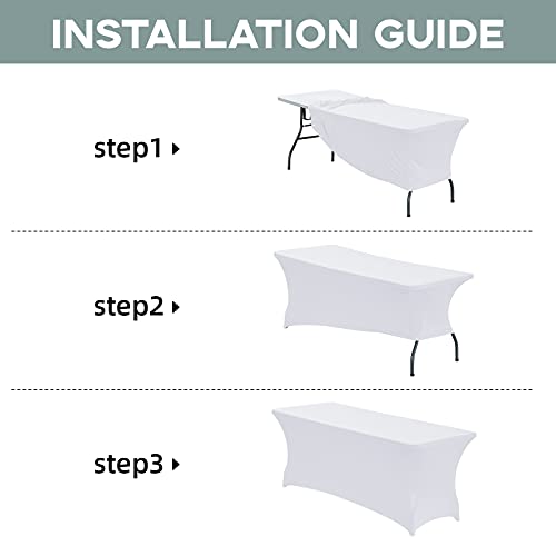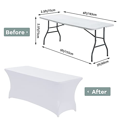 CWK 6FT Stretch Spandex Table Cover for Rectangular Fitted Folding Tables, Wrinkle Resistant, Elastic Stretchable Patio Tablecloth Protector for Party, Banquet, Wedding and Events (White)