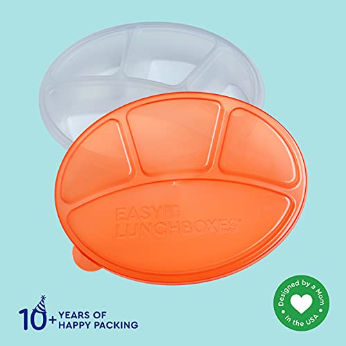 EasyLunchboxes® – Oval Lunch Boxes – Reusable 4-Compartment Food Containers for Work, Travel and Meal Prep, Set of 4, (Classic)