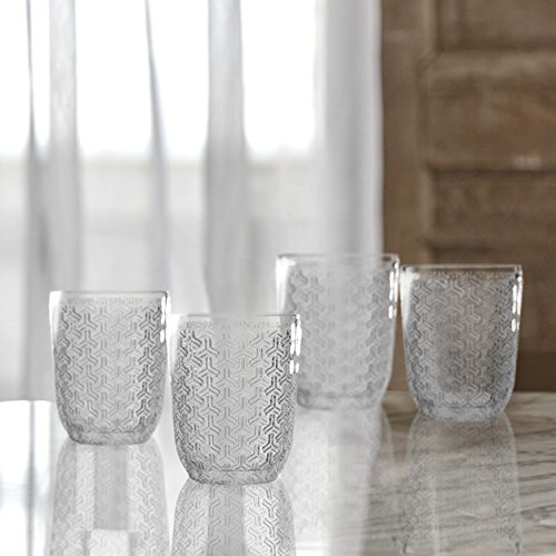 Elle Décor, Bistro Key Old Fashion Glassware, 4 pc set, Clear-Glass Tumbler. Stylish and sturdy classic drinking glasses for everyday use.