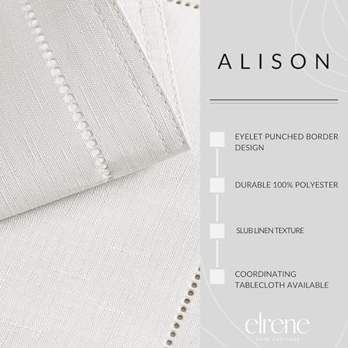Elrene Home Fashions Alison Eyelet Border Design Cloth Fabric Dinner Napkin, Set of 4, 17″x17″, White