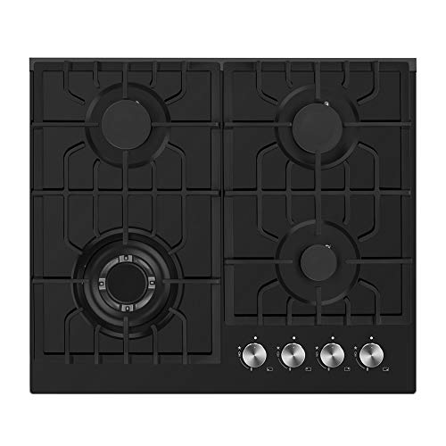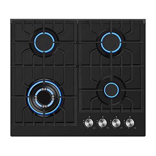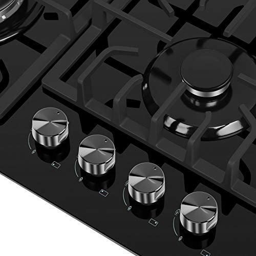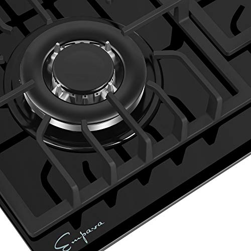 Empava 24 in. Gas Stove Cooktop with 4 Sealed Burners-Heavy Duty Continuous Grates-NG/LPG Convertible-Black Tempered Glass Surface, 24 Inch