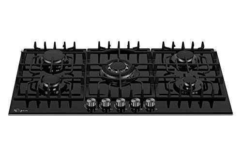 Empava 36″ Bulit-in Tempered Glass Gas Cooktops 5 Italy Imported Sabaf Burners Stove Tops, 36 Inch, Black