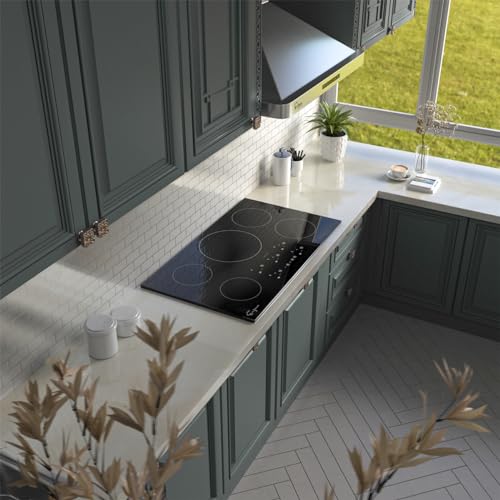 Empava 36 Inch Electric Stove Induction Cooktop with 5 Power Boost Burners Smooth Surface Vitro Ceramic Glass in Black 240V