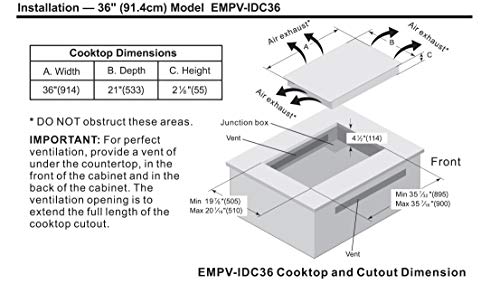 Now you are cooking! Enjoy all these features even more by knowing this cooktop. Product Dimension 36 in. L x 21 in. D x 2.12 in. H. Cutout Dimensions 35.3 in. L x 20 in. D., Requires 240 Volts wiring with 50 amps breaker, hard wiring included. Commercial/Residential- Residential