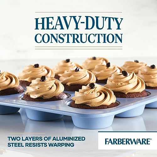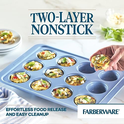 DOUBLE THE NONSTICK: The Farberware Easy Solutions 12-cup muffin pan features an enhanced, two-layer nonstick for excellent release and long lasting nonstick durability.