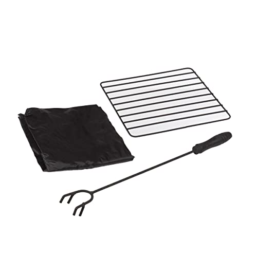PRODUCT DETAILS- Fire Pit dimensions: 32″ L x 32″ W x 19.5″ H. Material: Powder Coated Steel Frame, Resists Rusting. Black and Orange Marbled Tile Top. Includes Safety Log Poker, Spark Screen and protective cover made of Weather Resistant PVC