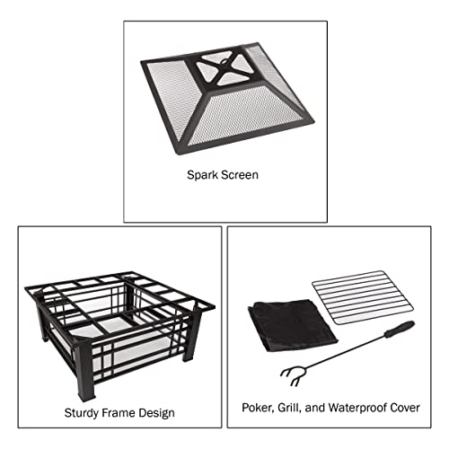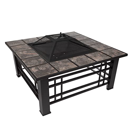 The 32” Square Tile wood burning fire pit with 18.5” Fire Bowl by Pure Garden has a simple finish that is attractive to match any outdoor living space décor. Relax by the warmth of an inviting fire on a cool summer night or crisp fall evening. Enjoy the warm glow on your patio and set the ambiance for a relaxing outdoor experience.